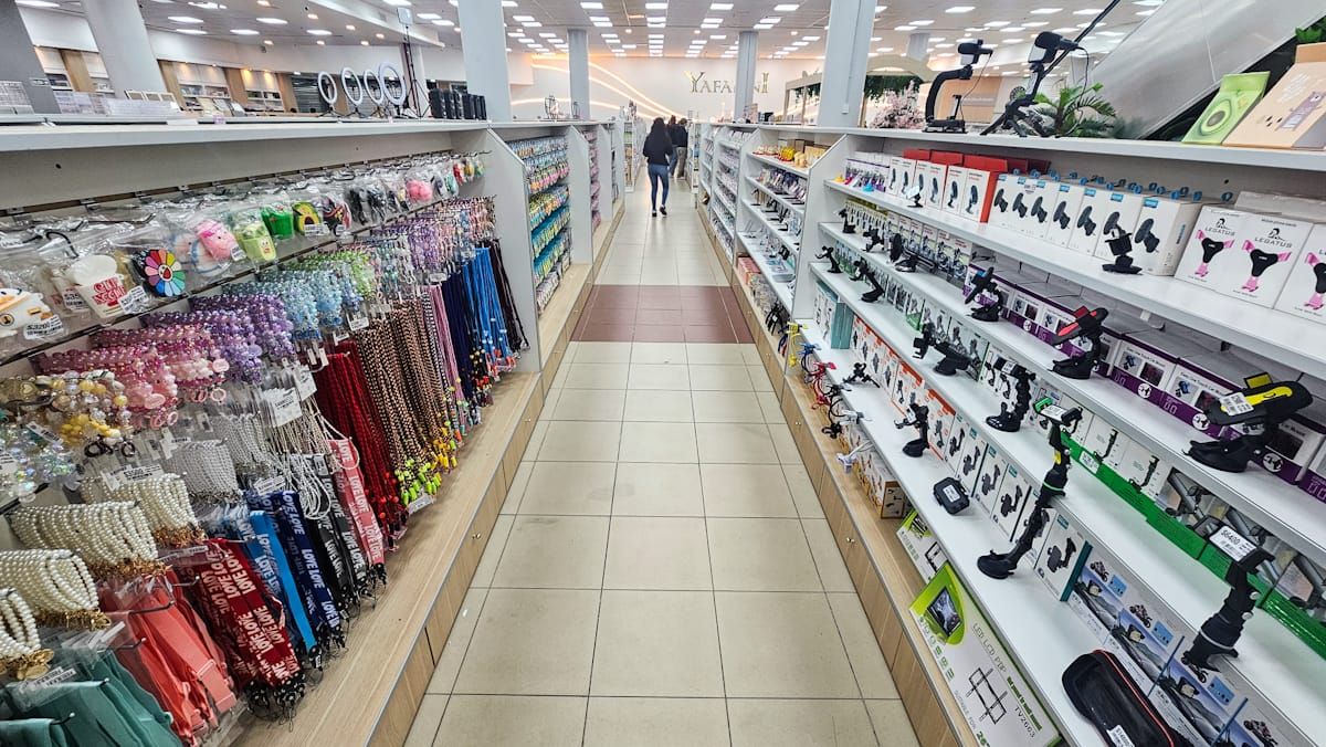 Yafanni Center también tiene su sector dedicado a la bijou con accesorios a precios económicos, objetos curiosos como mini estufas de escritorio o anteojos de sol para perros y gatos. Todo tipo de soportes para celulares o kits de filmación se incluyen entre las ofertas de la tienda.