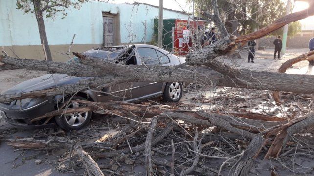 A tres horas de iniciado el viento, desde la Dirección de Protección Civil sanjuanina, informaron que se registraron caídas de árboles que en algunos casos afectaron a autos estacionados y que "hubo caída de postes de luz y cortes de electricidad en (los departamentos) Rawson, Sarmiento y Pocito".