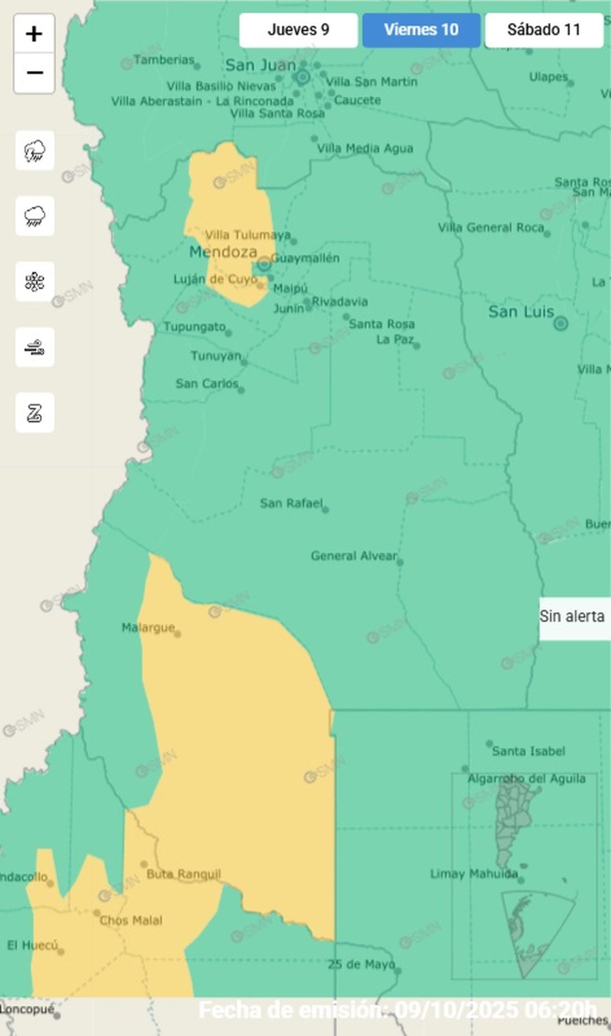Las zonas de Lujan de Cuyo, Las Heras y Malargüe serán afectadas por viento Zonda con velocidades estimadas entre 30 y 40 km/h con ráfagas que podrían alcanzar los 65 km/h. Este fenómeno puede provocar reducción de la visibilidad, aumento repentino de la temperatura y condiciones de humedad relativa muy bajas