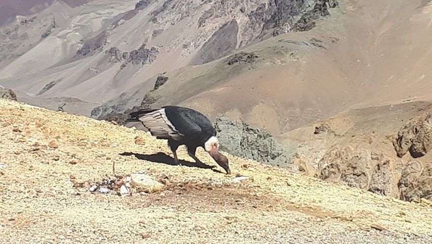 El animal carroñero aprovechó los desechos de alimentos que había a pocos metros del Hotel de Plaza de Mulas, ubicado a 4.300 metros de altura sobre el nivel del mar.