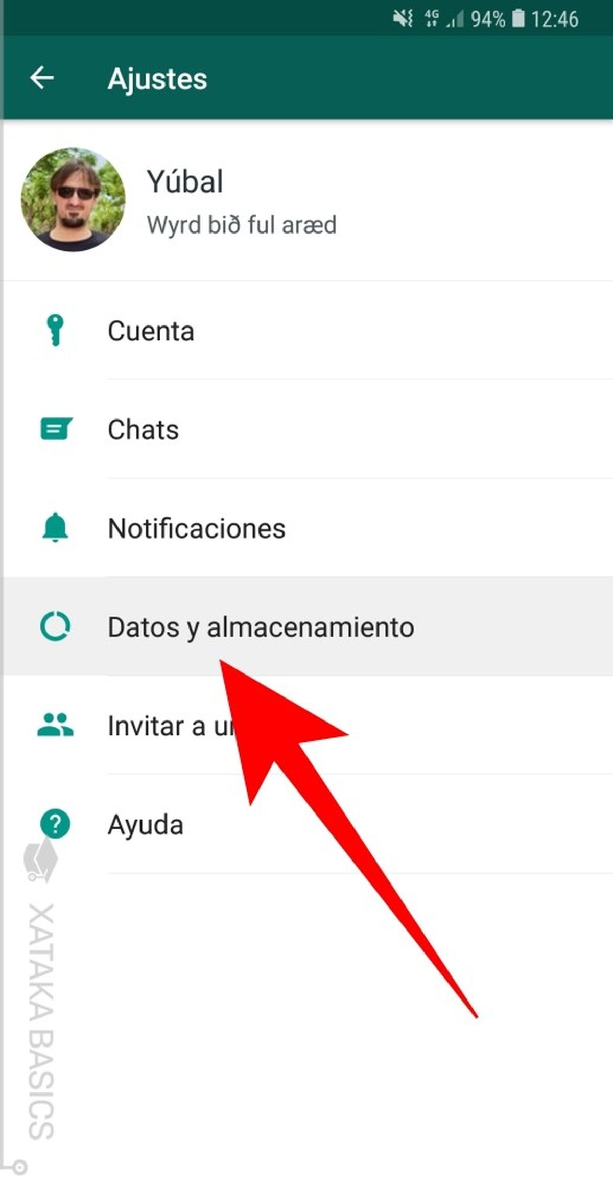 - Ir a Ajustes y dirigirse a Almacenamiento y datos.
