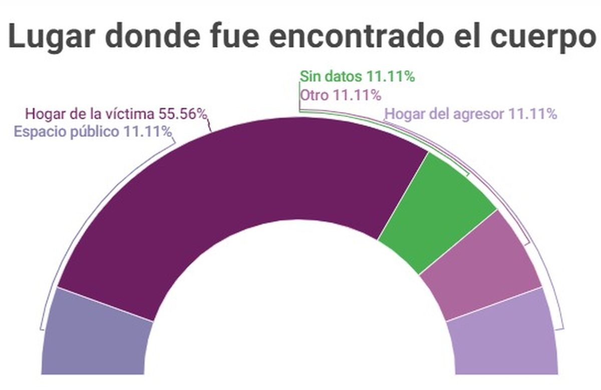 Asimismo, los cuerpos fueron hallados, en su mayoría, dentro de los hogares de las víctimas. En segundo lugar se ubicó la casa del agresor. Está claro que el ámbito doméstico continúa siendo un sitio peligroso para las mujeres.