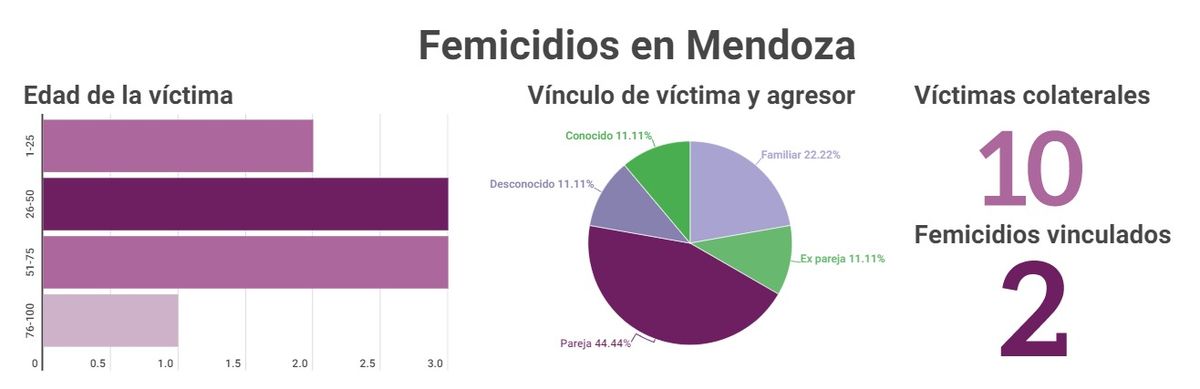 A su vez, se detectaron en el país 18 femicidios vinculados, es decir homicidios cometidos contra una o varias personas a fin de causarle sufrimiento a una mujer, mujer trans o travesti. De ellos, 2 ocurrieron en Mendoza.