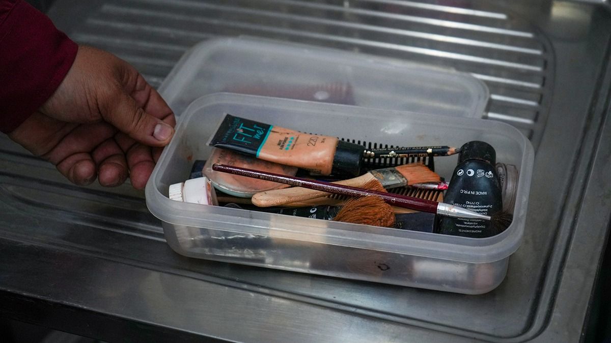 Podría ser un quirófano, pero el contexto lo enrarece: hay cajas con maquillajes, un secador de pelo, peines, esmalte de uñas. Claramente, tampoco es un quirófano.