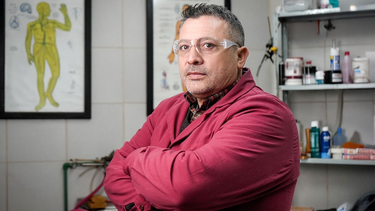 Su trabajo es una combinación de profesiones: desde cirujano, hasta estilista, inclusive maquillador de efectos especiales, tanto como reconstruir un cráneo con una base de Telgopor y utilizar el látex de los guantes para simular piel puede serlo.