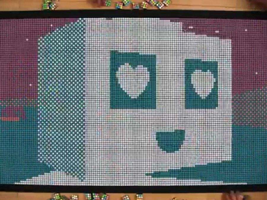 El récord del mundo en resolución del cubo Rubik está en poco menos de 6 segundos. Es de suponer que para resolver cada uno de los que conforman el mosaico en stop-motion de este vídeo se ha tardado un poco más, pero no por ello el resultado es menos impresionante. Y además cuentan una bonita historia.Joe Penna utilizó para formarlo exactamente 1296 cubos de Rubik y tuvo que resolverlos y/o acomodarlos para cada fotograma 961 veces. Nada mal.
