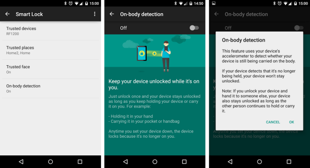 Proteger tu teléfono mediante un código o con un sensor de huella dactilar es una medida inteligente y en muchos casos necesaria. Pero según la situación, a veces no compensa estar introduciendo el código de desbloqueo multitud de veces al día. Una nueva funcionalidad de Android quiere resolver ese problema.Se llama, en inglés, on-body detection y la idea es que aunque el teléfono funciona normalmente con un código o patrón de desbloqueo, una vez lo introducimos y mientras llevemos posteriormente el teléfono en la mano o en el bolsillo (algo que se encargan de detectar los sensores y acelerómetros del dispositivo) no volverá a pedirlo.