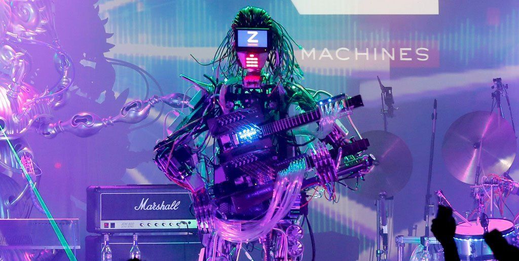 Para lograrlo, Matsuo y su equipo construyeron un guitarrista que lleva dos instrumentos a la vez y tiene 78 dedos para poder tocar ambos simultáneamente; el otro miembro del grupo es un batería con 22 brazos.
