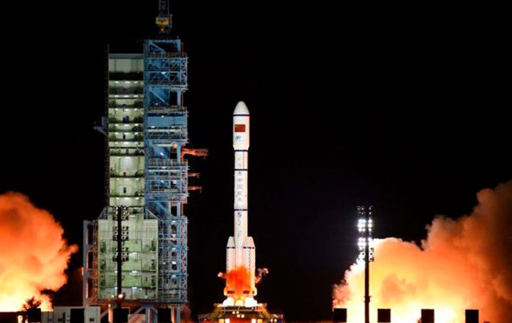 El despegue se realizó desde el Centro de Lanzamiento de Satélites Jiuquan, en el desierto de Gobi, donde el Tiangong-2 (de 8,6 toneladas de peso) partió a bordo de un cohete Gran Marcha-2F.