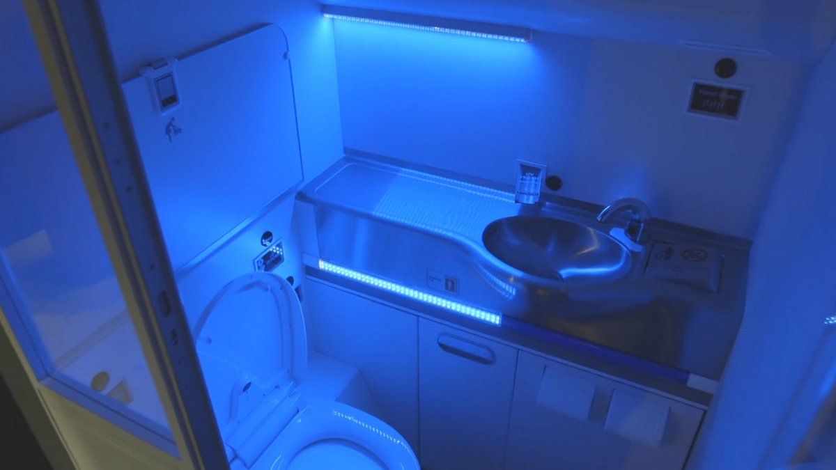 Boeing mostró una nueva tecnología que permite limpiar el baño automáticamente utilizando luz ultravioleta.Luego de realizar varios estudios en baños de aviones, la empresa creó un sistema que utiliza luz ultravioleta para matar el 99 por ciento de los patógenos.