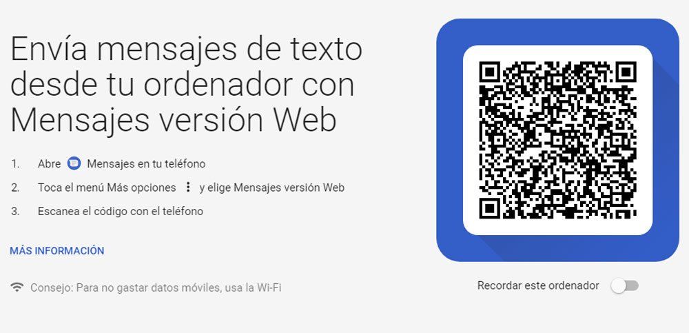 El funcionamiento de esta plataforma (disponible en messages.android.com) es similar al de la versión web de WhatsApp y requiere emparejar un código QR entre el teléfono móvil y la computadora, siguiendo tres simples pasos descritos en la pantalla.
