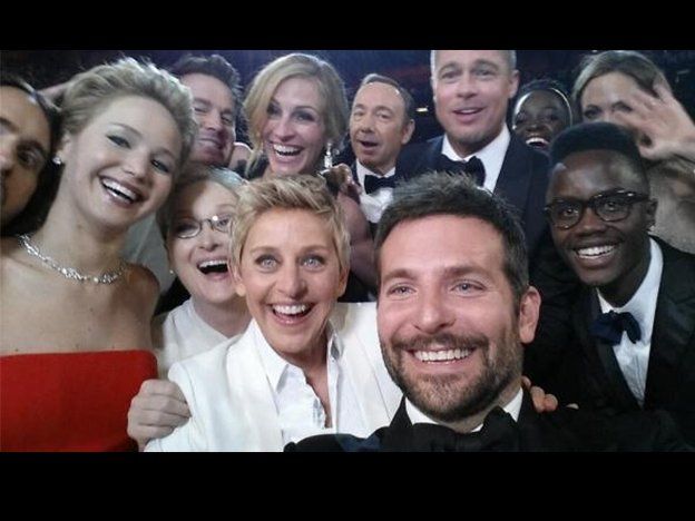 Más tarde, DeGeneres protagonizó el momento más comentado de la noche, al menos en las redes sociales: el 'selfie' en el que se retrató junto con algunas estrellas de Hollywood como Jennifer Lawrence, Meryl Streep, Julia Roberts, Kevin Spacey, Brad Pitt o la premiada Lupina Nyong'o.