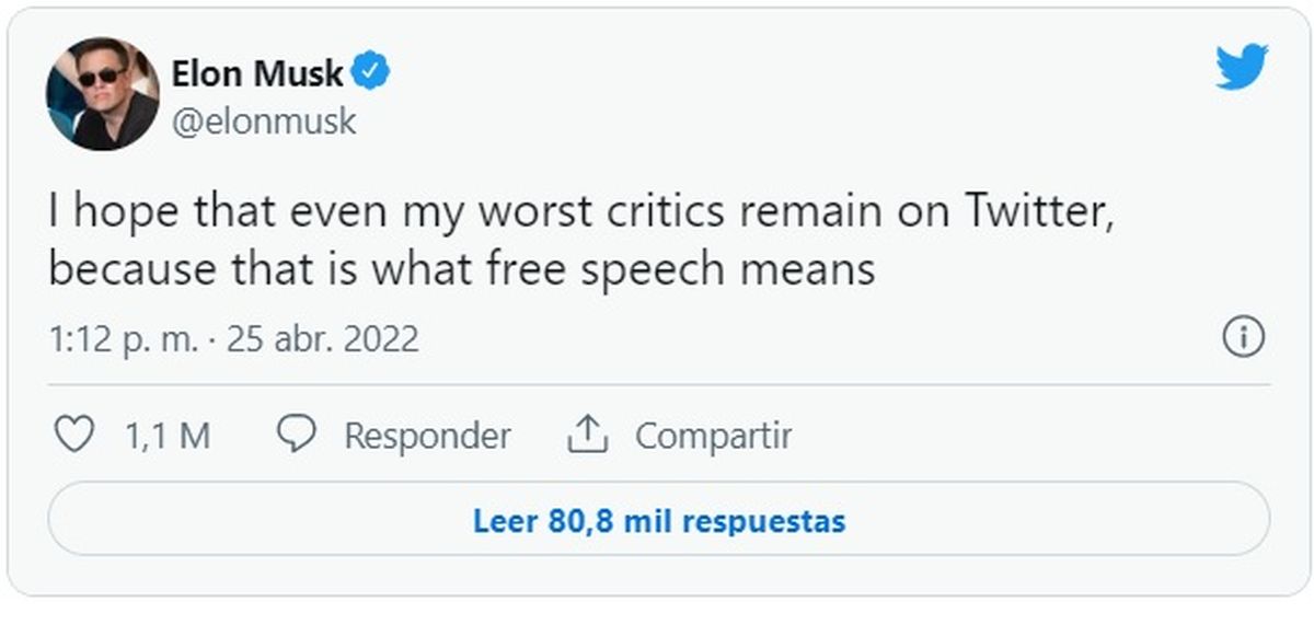 Es por eso que ahora adquirió la totalidad de la red social por 44.000 millones de dólares. Esto lo anunció a través de un comunicado, en el que también dijo que “la libertad de expresión es la base para que una democracia funcione, y Twitter es la plaza pública digital donde se debaten asuntos vitales para el futuro de la humanidad”.