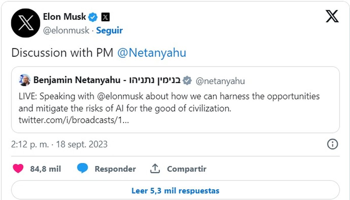 Justamente Netanyahu debatió con Musk sobre el tema, durante un foro difundido por X y le planteó el problema del antisemitismo en Internet y las posibilidades de prevenir la utilización de bots.