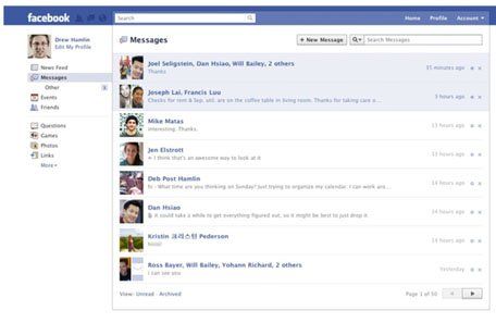 todo tipo de formas de comunicación, como el chat en línea y otras herramientas de conversación detiempo real en una sola plataforma. Zuckerberg afirmó que el sistema incluye correo electrónico, aunque señaló que esta formatradicional de comunicación en la red ya había perdido su encanto y es muy lenta para el usuariojoven.