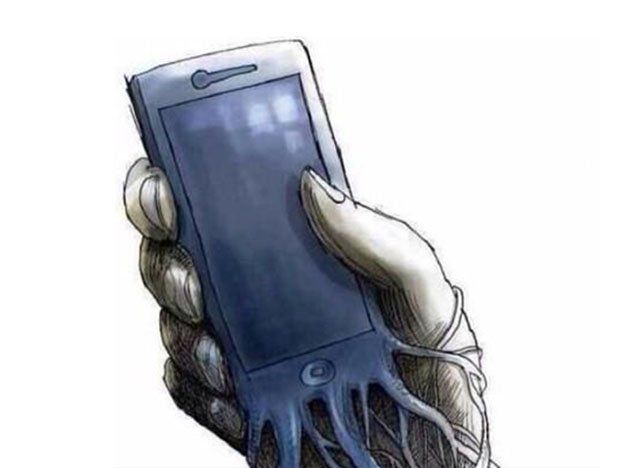 Igual que hace en sus dibujos en exterior, Banksy parece enviarnos aquí también un ácido mensaje: vivimos prisioneros de nuestra vida digital. Puedes ver la ilustración completa debajo.