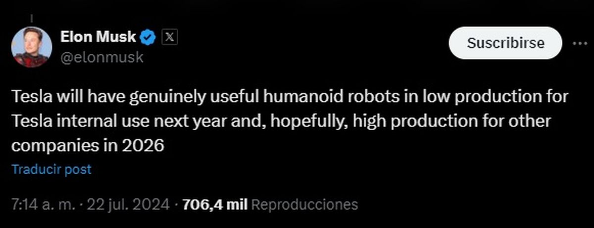 Musk anunció su decisión -como hace normalmente- a través de su red social X (ex Twitter), y causó revuelo. "Tesla tendrá robots humanoides realmente útiles en baja producción para uso interno de Tesla el próximo año", escribió.