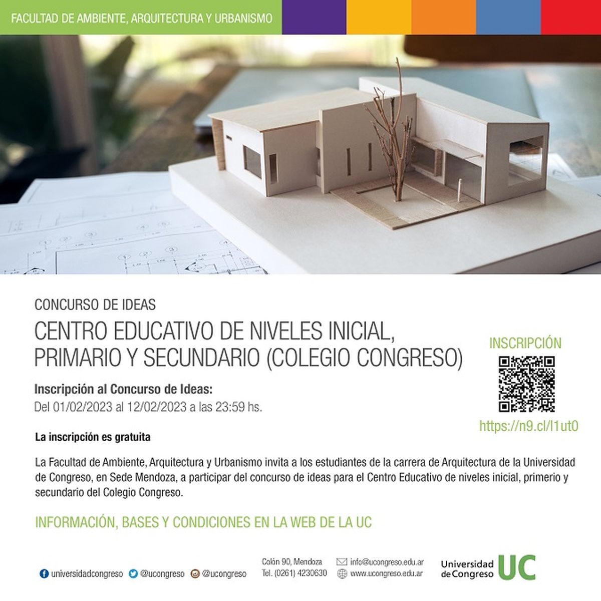 La Facultad de Ambiente, Arquitectura y Urbanismo invita a los estudiantes de la carrera de Arquitectura de la Universidad de Congreso, en Sede Mendoza, a participar del concurso de ideas para el Centro Educativo de niveles inicial, primerio y secundario del Colegio Congreso.