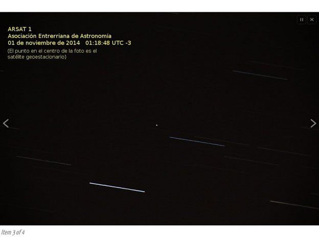 En la web www.astroentrerios.com.ar, el Observatorio dio a conocer las primeras imágenes del satélite argentino en el espacio, el cual "tiene la característica de poseer un tiempo de traslación orbital igual al tiempo de rotación terrestre", indicó Walter Elias, integrante de la asociación.