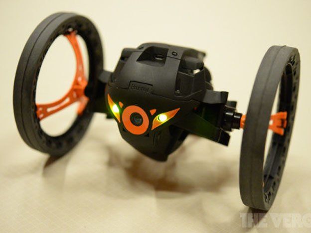 Parrot ha presentado también el Jumping Sumo, en la foto de arriba. Es, en esencia, lo que ves: un extraño coche-robot que se controla inclinando tu smartphone o tableta. Cuenta con una cámara en la parte frontal que envía el vídeo a tu equipo a través de WiFi. Es muy rápido gracias a sus ruedas y puede girar como un loco.