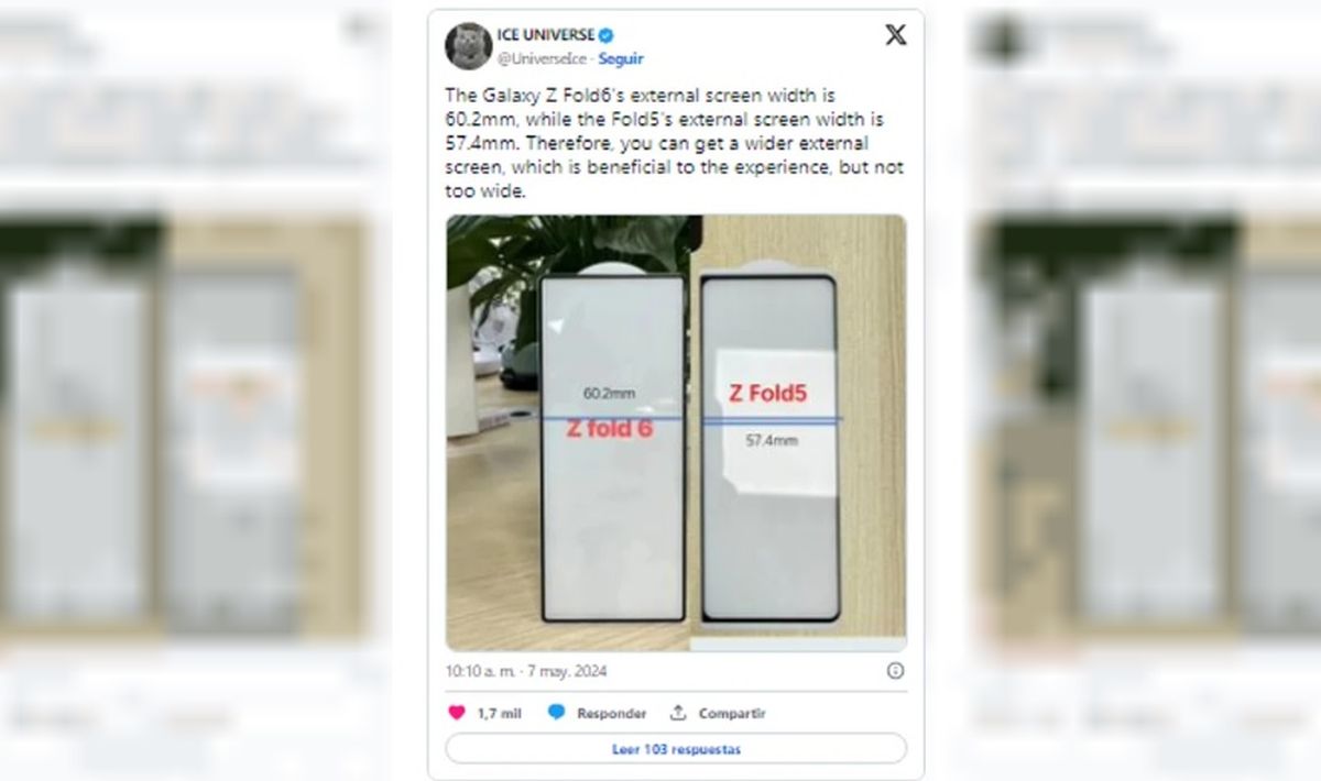 Ha sido gracias a Ice Universe (Universeice) que se han podido conocer los planes de Samsung. La imagen que ha publicado muestra cómo será el diseño de la pantalla exterior del Galaxy Z Fold 6, con la gran sorpresa de que su tamaño aumentará considerablemente en comparación con la generación anterior.