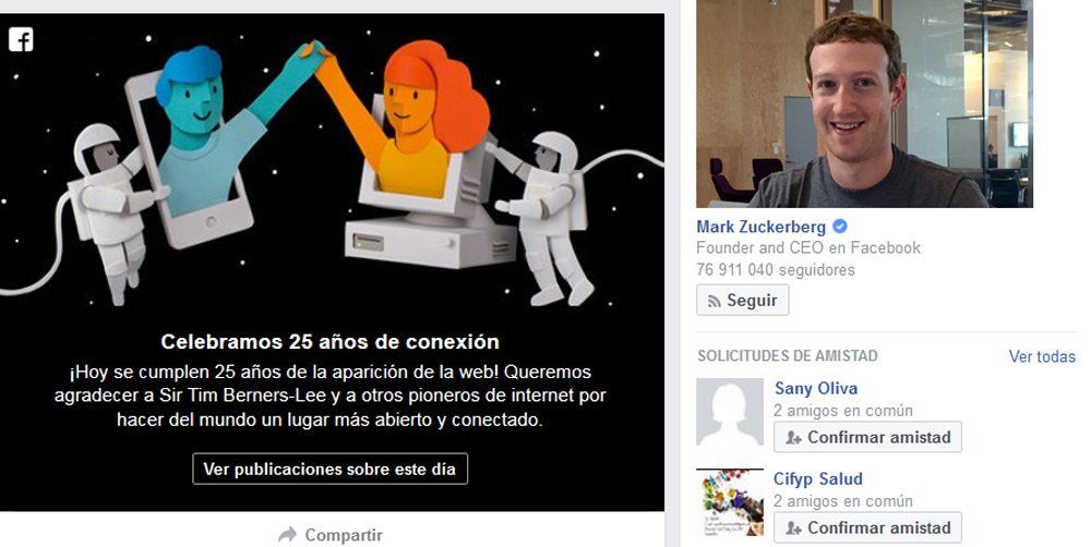 "Celebramos 25 años de conexión ¡Hoy se cumplen 25 años de la aparición de la web! Queremos agradecer a Sir Tim Berners-Lee y a otros pioneros de internet por hacer del mundo un lugar más abierto y conectado", se puede leer.