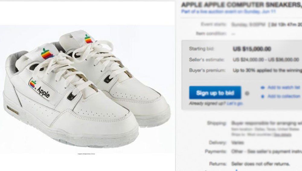 Este domingo en el popular sitio de subastas eBay se pondrán a la venta unas raras zapatillas deportivas, producidas por el gigante tecnológico Apple a principios de los años 1990, por un precio inicial de 15.000 dólares, informa la revista 'Forbes'.El vendedor ha explicado el coste tan astronómico del par de zapatillas viejas, señalando que fueron producidas en una edición limitada y solo para la 'élite' de los empleados de Apple. Además tienen tienen un rasgo distintivo: un logotipo a color de la empresa.Todavía no se sabe cómo las zapatillas acabaron en las manos del vendedor, pero ya es obvio que le traerán un gran beneficio, como todas las cosas que en algún tiempo pertenecieron al personal de la empresa estadounidense. Así, el año pasado, una chaqueta de cuero que llevaba Steve Jobs fue vendida por 22.000 dólares, sus pantalones vaqueros por 3.000 dólares y su reloj Seiko por 12.000 dólares.Mientras tanto, esta vez el vendedor espera recibir por sus zapatillas unos 30.000 dólares.