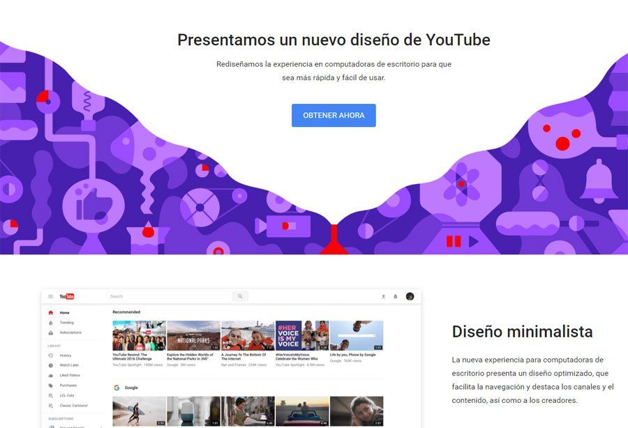 YouTube anunció un rediseño de su página web que ahora será más simple de navegar ya que se eliminaron elementos visuales que generaban distracción, pero la nueva versión sólo será accesible para un grupo reducido ya que la plataforma de videos online espera opiniones de sus usuarios. "A partir de ahora estamos abriendo una vista previa del nuevo diseño para un pequeño grupo de personas de todo el mundo para que podamos obtener retroalimentación", explicó el portal de videos en su blog oficial.
