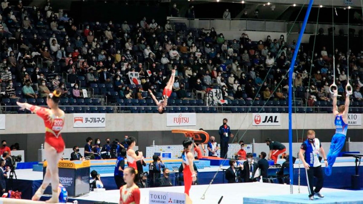 Unos 2.000 aficionados siguieron desde las tribunas del Yoyogi National Stadium de Tokio la competición internacional de gimnasia en la que participaron 30 atletas de cuatro países, que sirvió como ensayo para probar medidas sanitarias para prevenir contagios de coronavirus de cara a los postergados Juegos Olímpicos de Tokio 2020, que se realizarán entre el 23 de julio y el 8 de agosto de 2021.