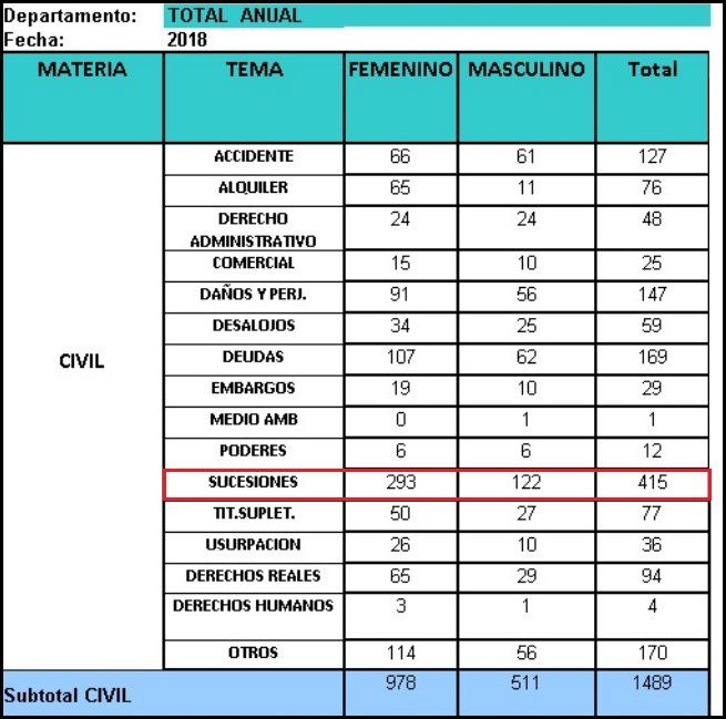 En este sentido, los datos obtenidos en el proyecto "Libertad y voluntad del causante para manifestarse por testamento en el Gran Mendoza", realizado por investigadores de la Facultad de Derecho de la UNCUYO, expresan que el 15% de las causas que ingresan al Poder Judicial son sucesiones, que representan el segundo o tercer proceso con mayor volumen (luego de daños y perjuicios o deudas). El problema radica en que solo el 4% o menos provienen de sucesiones testamentarias.