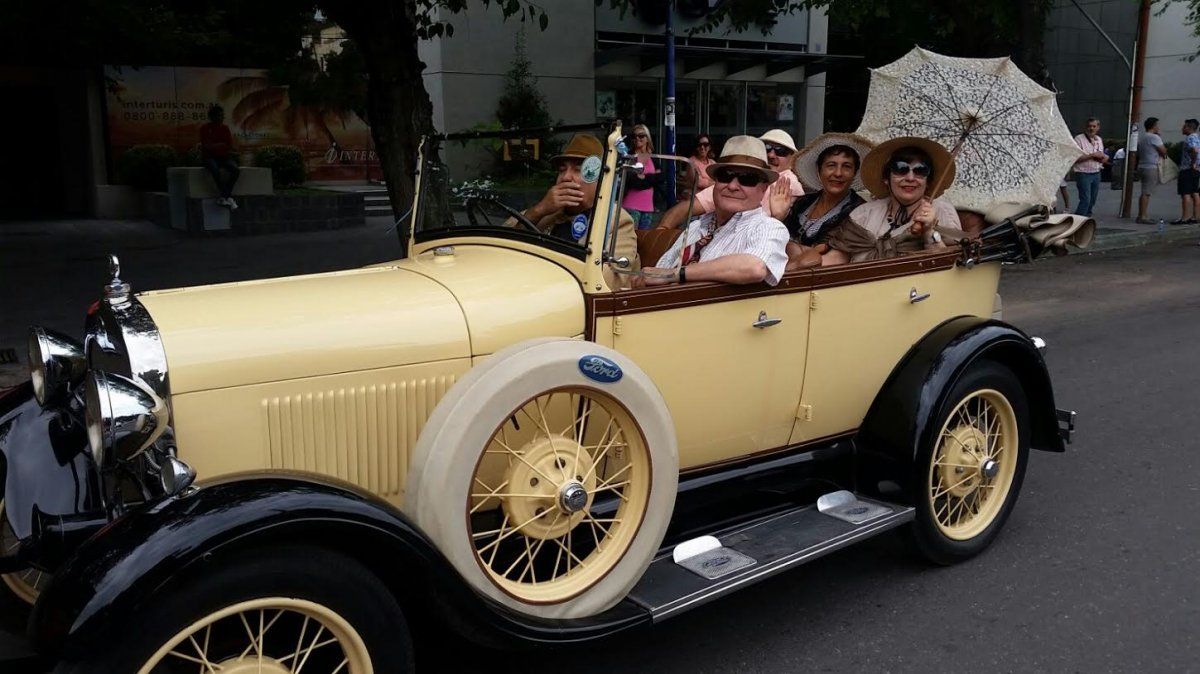 Todos sus pasajeros se vistieron de época para pasear por las calles de Mendoza.