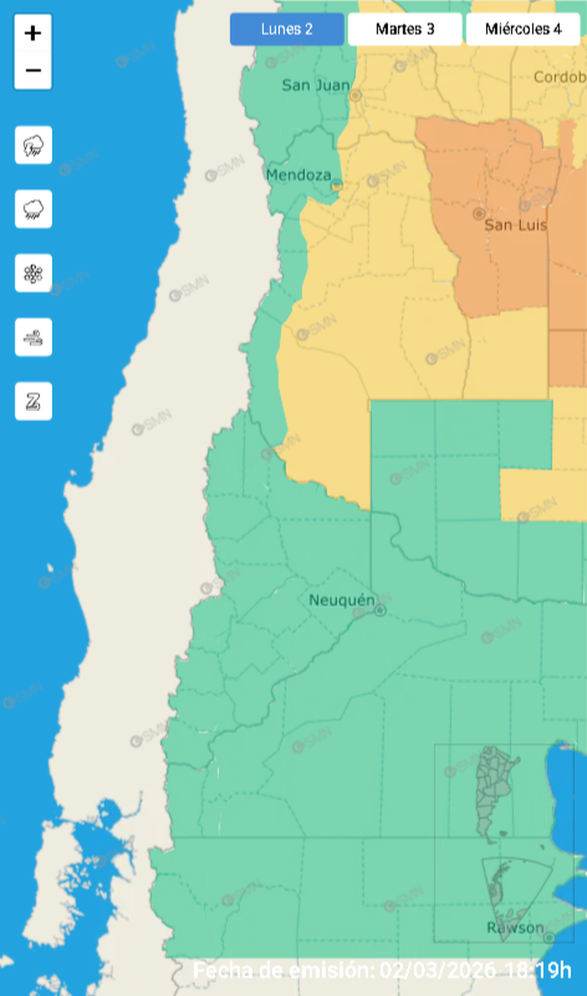 Gran parte de Mendoza está bajo alerta amarilla