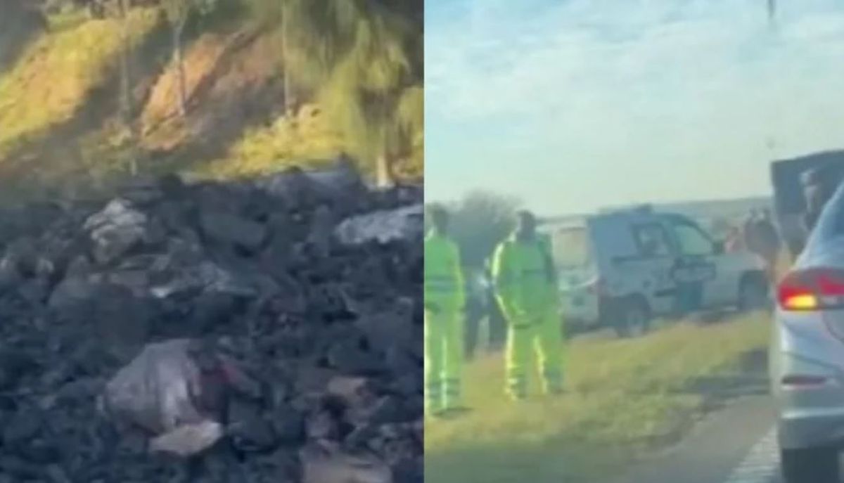 "Es el primer meteorito que cae en la zona. Quemó todo el camión", concluyó en el video que se volvió viral. En el mismo, se pueden observar rocas de color negro que se especula que es parte del presunto meteorito con el carbón que perdió el camionero tras el siniestro.