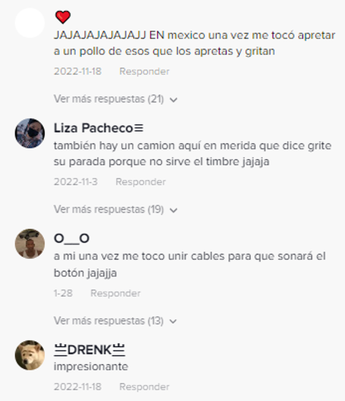 Entre los comentarios de los usuarios de Tiktok que contaron su experiencia de timbres improvisados en los micros de sus ciudades, aparecieron algunos como: