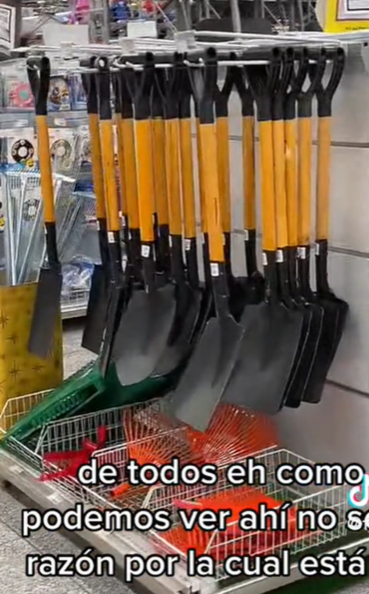 "Gente, hago este video como método de precaución para la gente que viene a hacer las compras. Vos estas caminando tranquilamente y te encontras con uno de los objetos más peligrosos de todos, como lo podemos ver ahí" comentó el chico que se hizo viral entre las cuentas de Tiktok y que hizo que todos terminaran aterrados con las inéditas imágenes de las palas en venta.