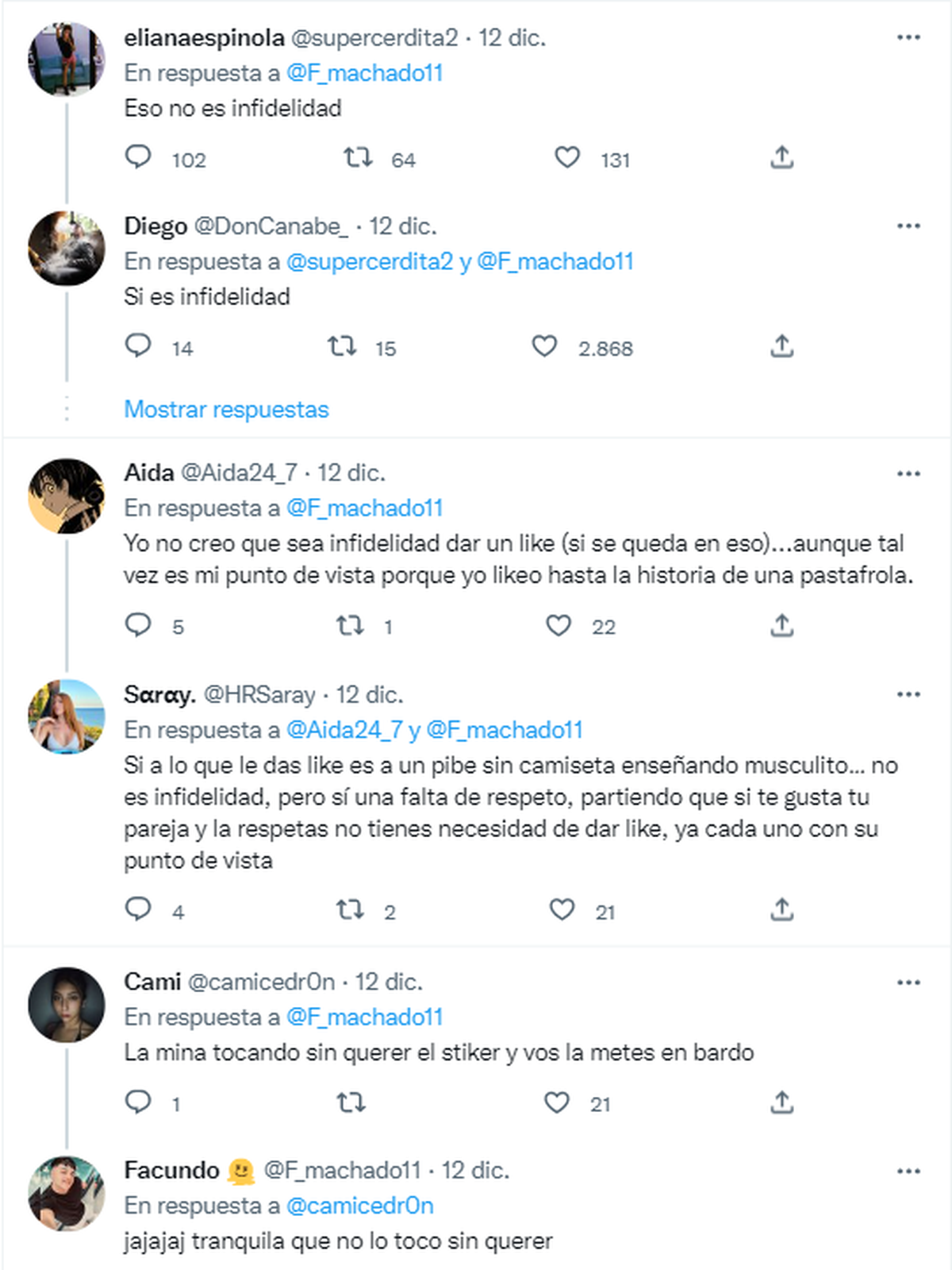 En la caja de comentarios se abrió un gran debate mientras algunos intentaban justificar el accionar del chico: Un me gusta ¿es infidelidad?