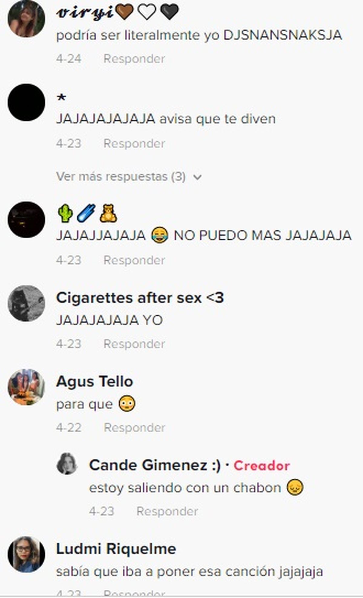 En la caja de comentarios del video, que llegó a tener casi 2 millones de reproducciones, los usuarios de Tiktok cayeron rendidos ante la chica de Mendoza. Varios se animaron a decir que iban a utilizarlo si llegaban a ponerse en pareja, aunque otros preguntaron con qué tema se dice que están solteros.