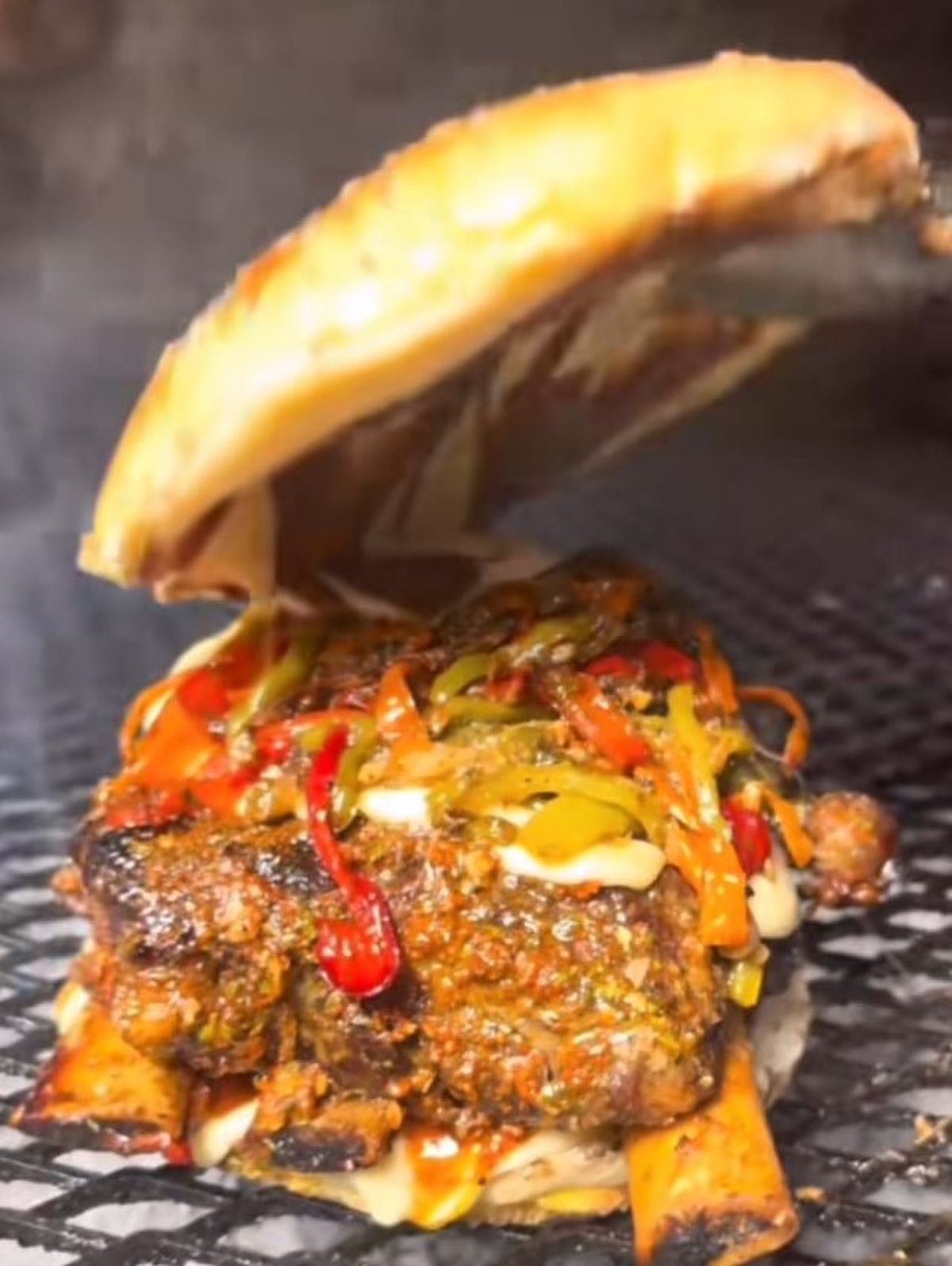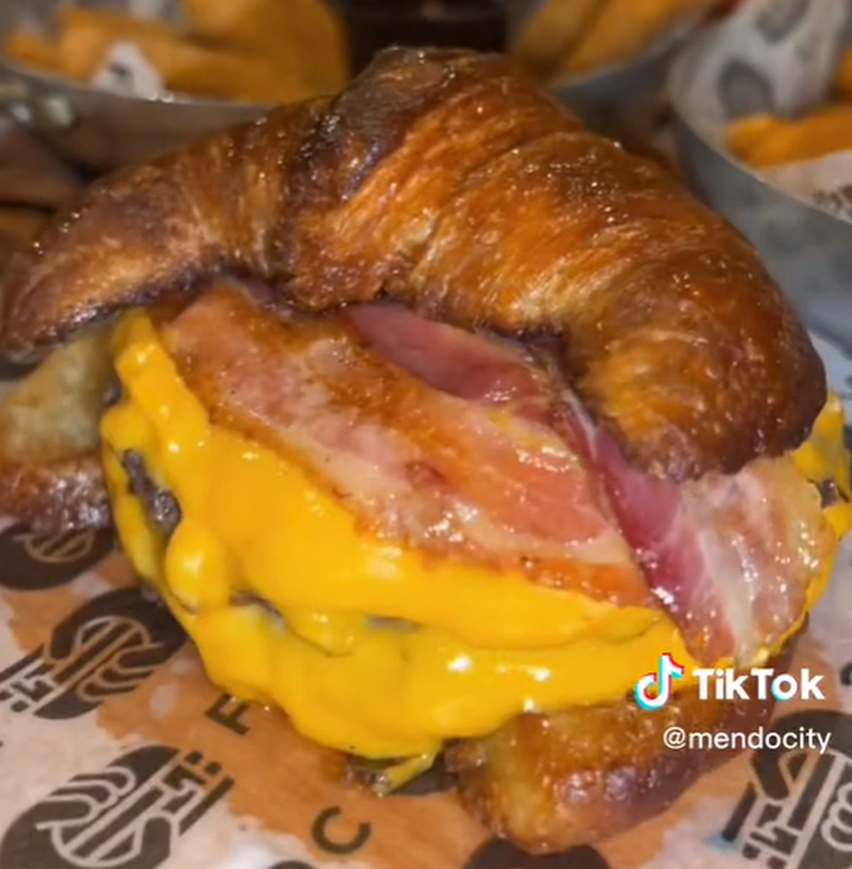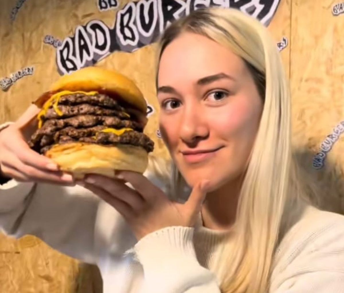 Con un doble medallón de carne, mucho queso cheddar, panceta, todo en una medialuna crocante, la joven viral la consideró como una de las mejores hamburguesas.