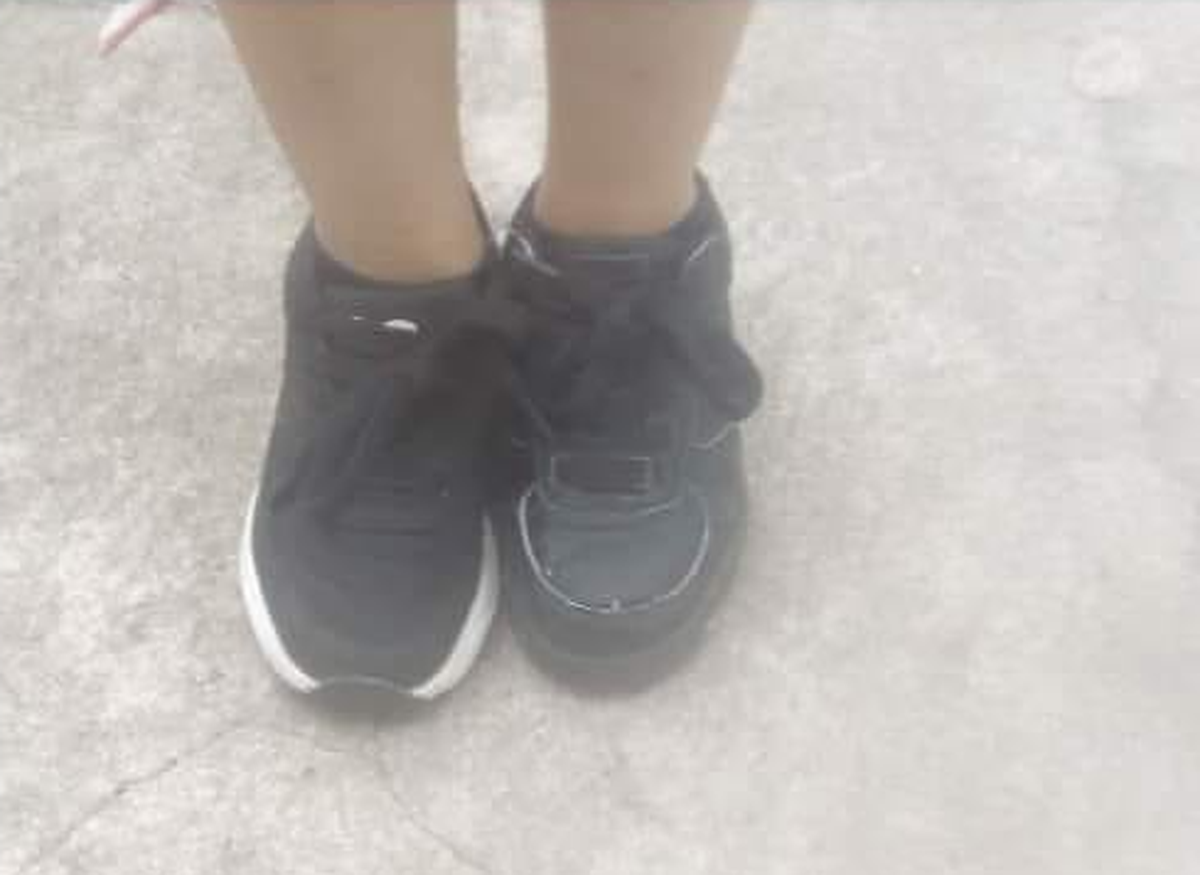 En la foto que le mandó su mamá, se podían ver las dos zapatillas de diferentes modelos, a lo que el protagonista de este insólito momento solo pudo contestar con una risa, y que a su mamá mucho no le gustó: "Te reís".