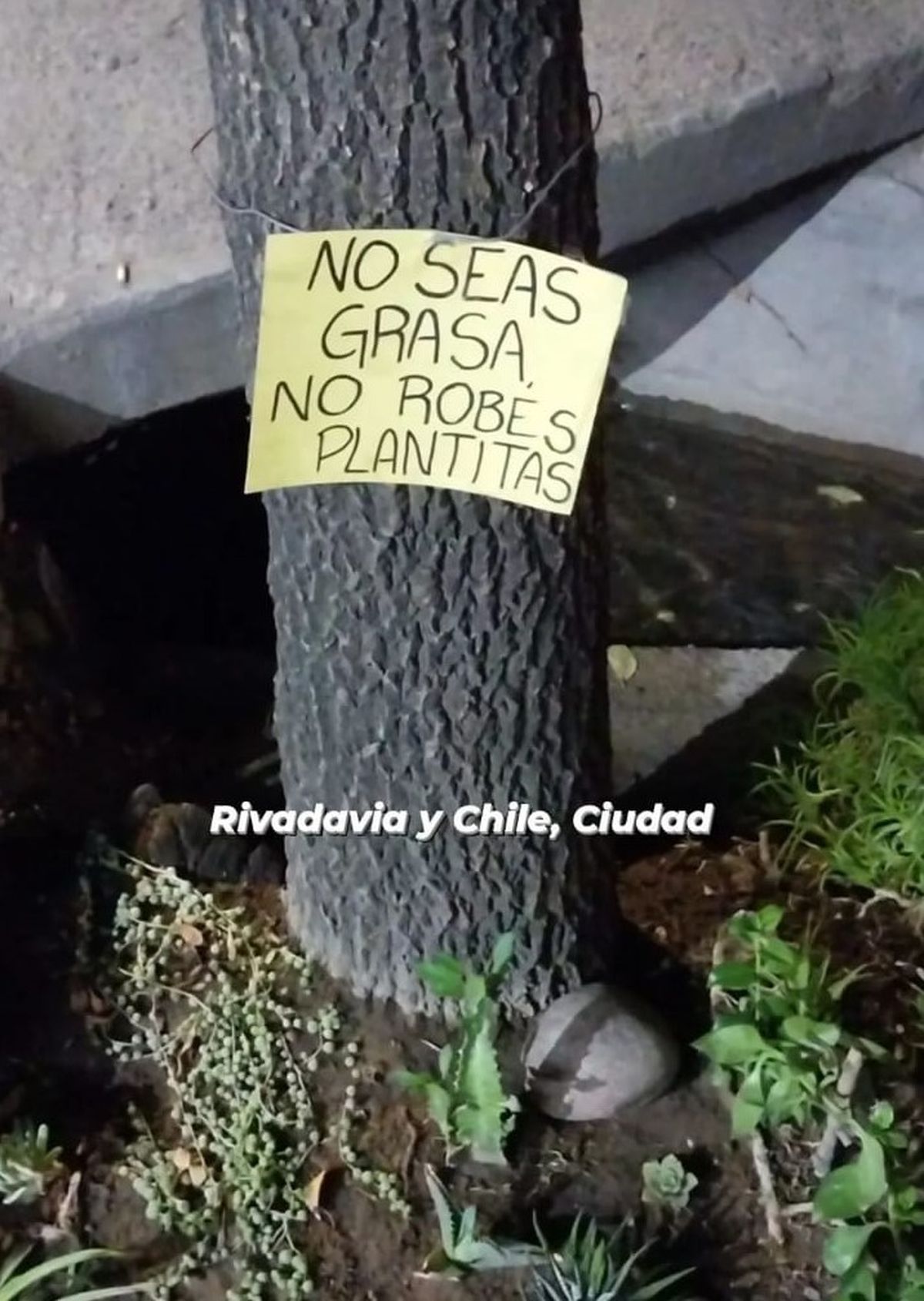 El particular cartel viral en Instagram está en plena esquina de uno de los cruces más transitados de la Ciudad de Mendoza, específicamente en Rivadavia y Chile. Y es que los vecinos, cansados de la inseguridad y de esta ola de robos, de la cual hasta las plantas son objetivos, optaron por intentar cortar con esto de una manera distinta, tratando de pegarle a los malvivientes directamente en el ego, acusándolos de "grasa".