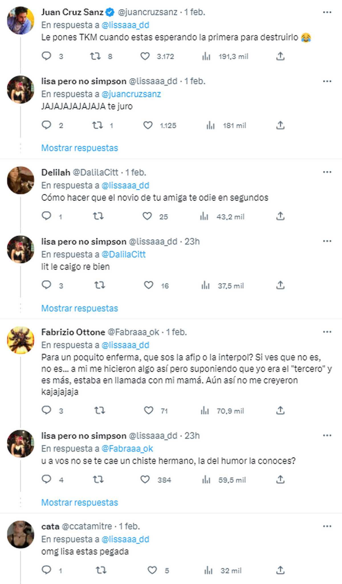 En los mensajes de WhatsApp de una de las imágenes que acompañaban al posteo viral de Twitter, se veían los mensajes con el novio de su amiga, a quien lo puso a prueba para saber si no era el infiel. "Más te vale gil, hay un chabón igual en el tren y justo agarró el celu cuando te escribí. Pensé que eras vos con otra mina y tenía que chequear que no cagues a Juli" le escribió al chat.