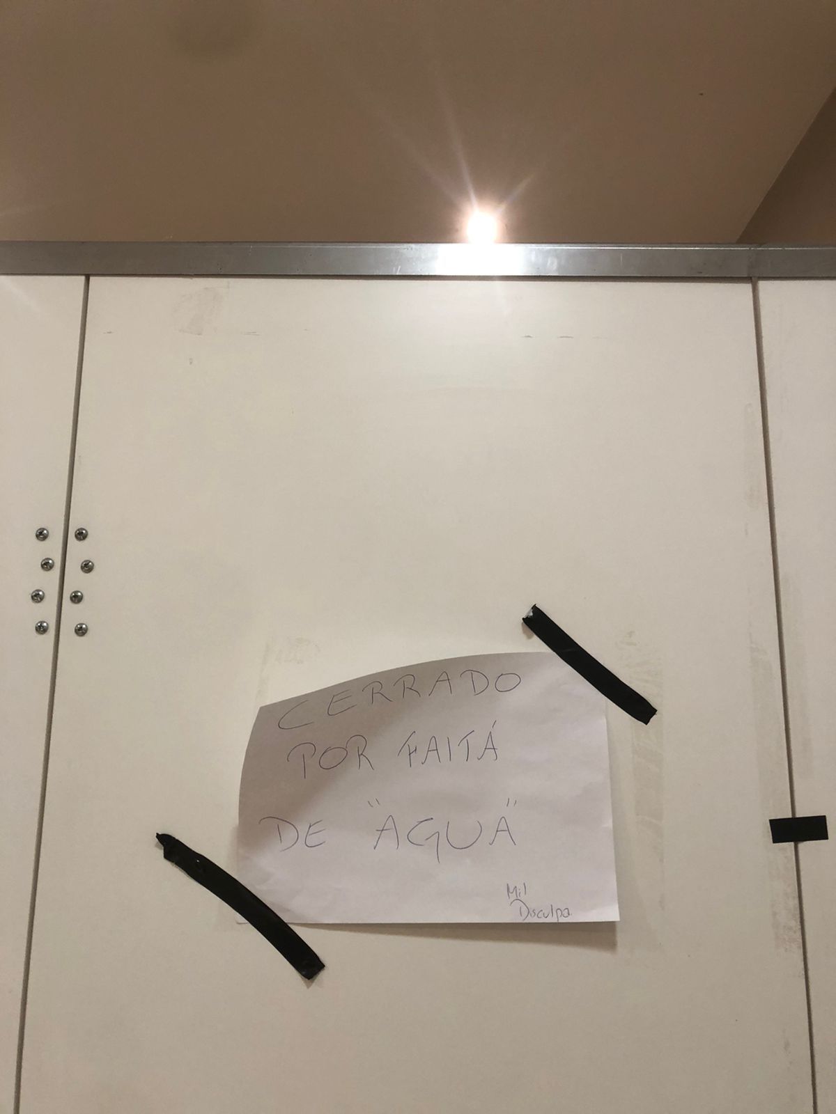 "Cerrado por faitá de "agua". Mil disculpa" se podía leer en el cartel hecho con una lapicera, pegado de una forma muy casera, que llamó la atención de la mendocina que intentaba ir al baño y terminó encontrándose con un extraño trabalenguas.