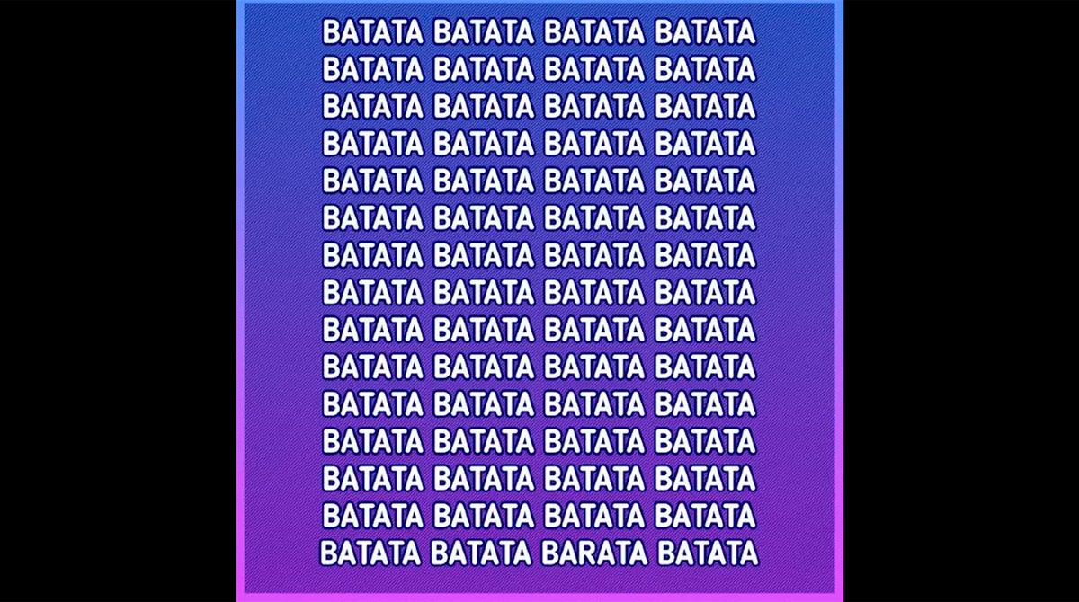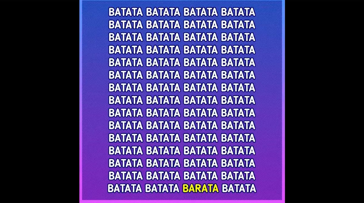 Este nuevo reto visual invita a encontrar la palabra "Barata" entre una gran cantidad de "Batata" en la menor cantidad de tiempo posible.