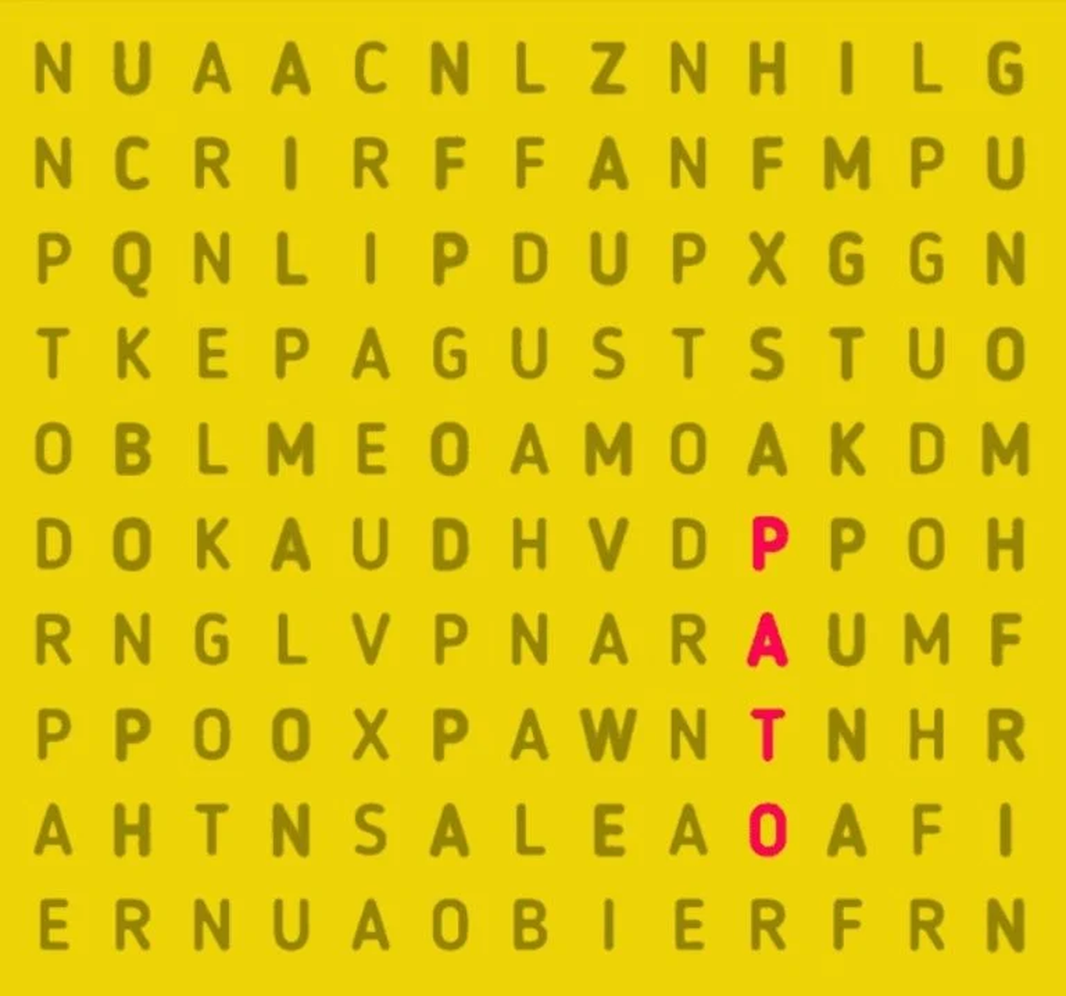 Este desafío viral recrea al mismo juego que se ha disputado desde niño. En este caso, la palabra "PATO" puede encontrarse escrita en forma horizontal, vertical o diagonal y desde arriba hacia abajo o inversamente y de derecha a izquierda o al revés.