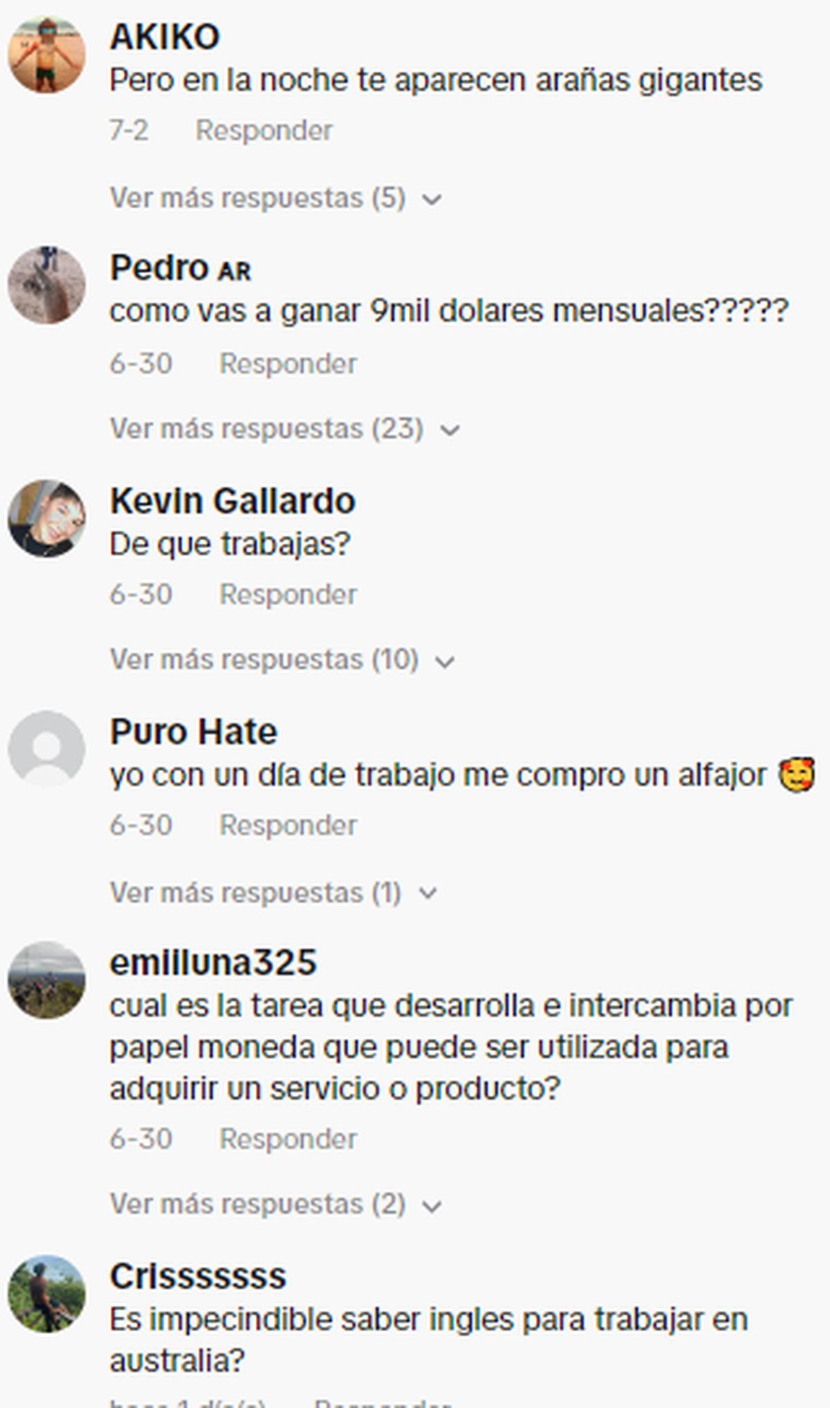 En la caja de comentarios del video de Tiktok, si bien algunos tomaron con gracia e ironizaron la gran capacidad adquisitiva del chico, otros si se enojaron con lo que pueden hacer con su sueldo en Argentina.