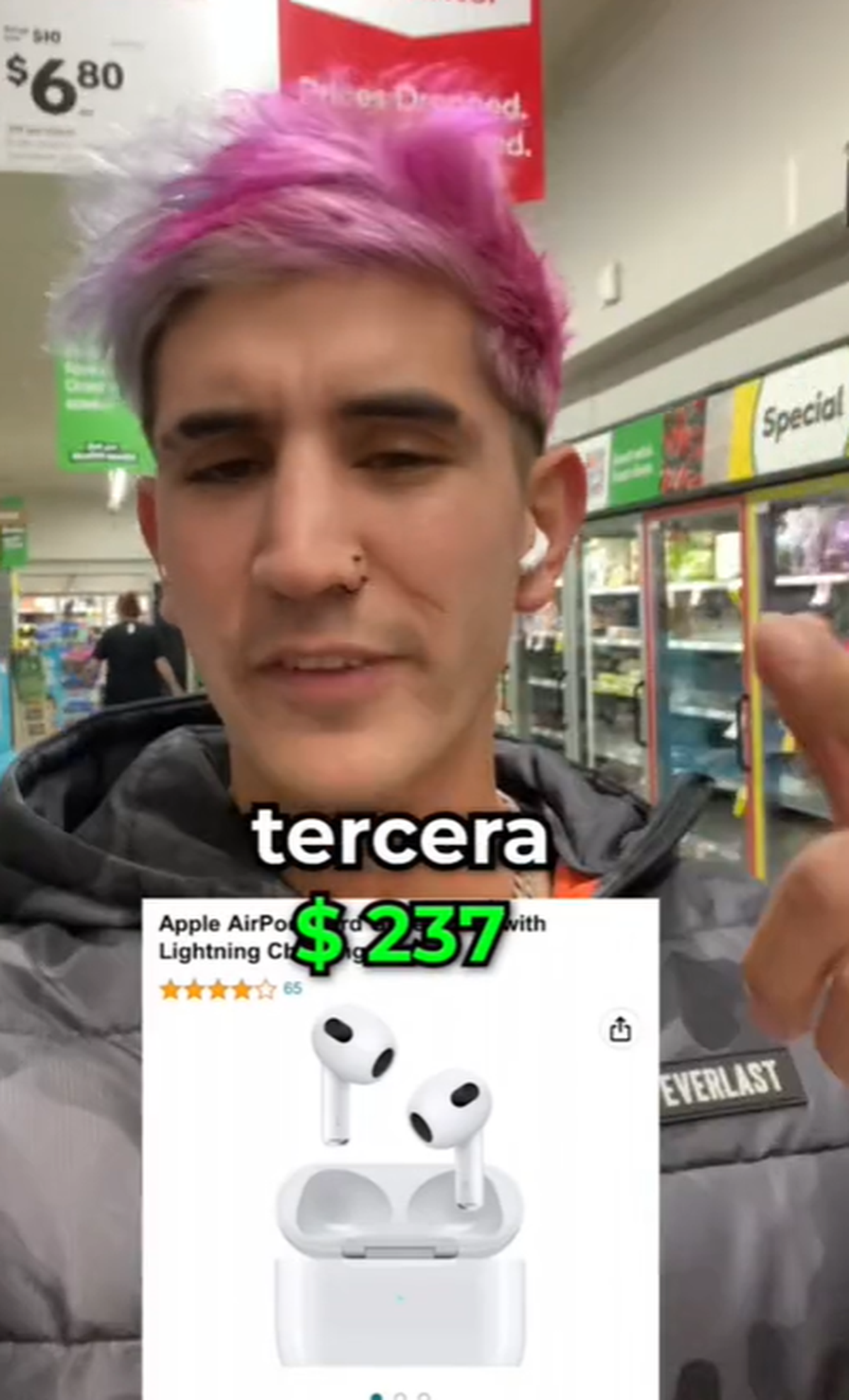 En las imágenes del Tiktok del chico que vive en Australia, y generó discordia entre los argentinos, se ven algunos productos que puede comprar con los 308 dólares que gana por una jornada de trabajo en el país extranjero. No solo se encargó de mostrar algunas cosas tecnológicas, como puede ser unos auriculares de Apple para Iphone, o un teléfono Samsung Galaxy.