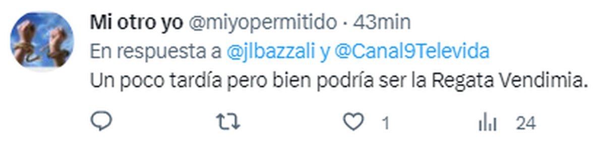"En #LuzuriagaCity somos distintos!! Regata callejera jajaja" publicó el usuario de Twitter de Mendoza, mostrando orgulloso la destreza y originalidad del vecino maipucino, que ante la gran tormenta, encontró la manera de sacarle una sonrisa a la gente del barrio.