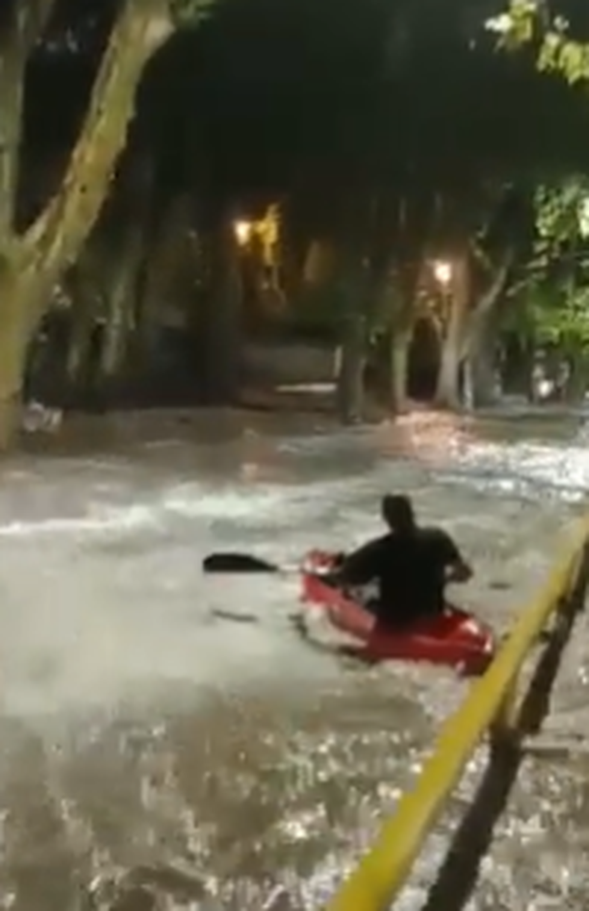 En las imágenes compartidas que se hicieron viral, se puede ver como el hombre pasa con su kayak color naranja acompañando el arrastre del agua que lo llevaba hacia la zona del Parque Canota de Maipú. Mientras tanto, una camioneta pasaba a su lado y dejaba en evidencia la fuerza con la que la corriente recorría una de las calles más transitadas del departamento del Gran Mendoza.