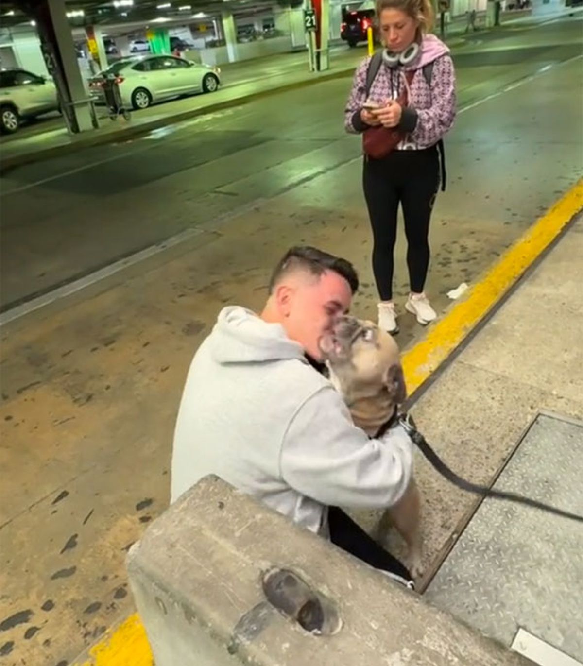 Se puede apreciar, tras olfatear a su dueño, cómo el bulldog francés se da cuenta que está ante el “amor de su vida”, para volverse loco de felicidad, a puro salto desenfrenado.