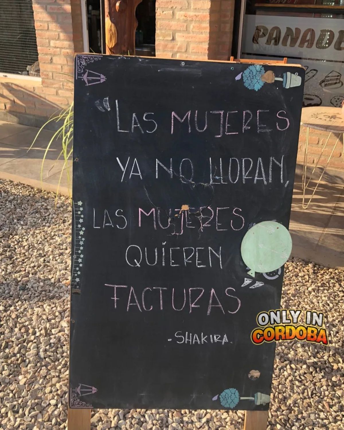 Una panadería de Córdoba se hizo verdaderamente viral en las redes luego de usar una de las frases de la session de Shakira junto a Bizarrap, como eslogan para atraer a la gente. Mientras la frase original dice "las mujeres ya no lloran, las mujeres facturan", los dueños del local le dieron "una vuelta de tuerca".